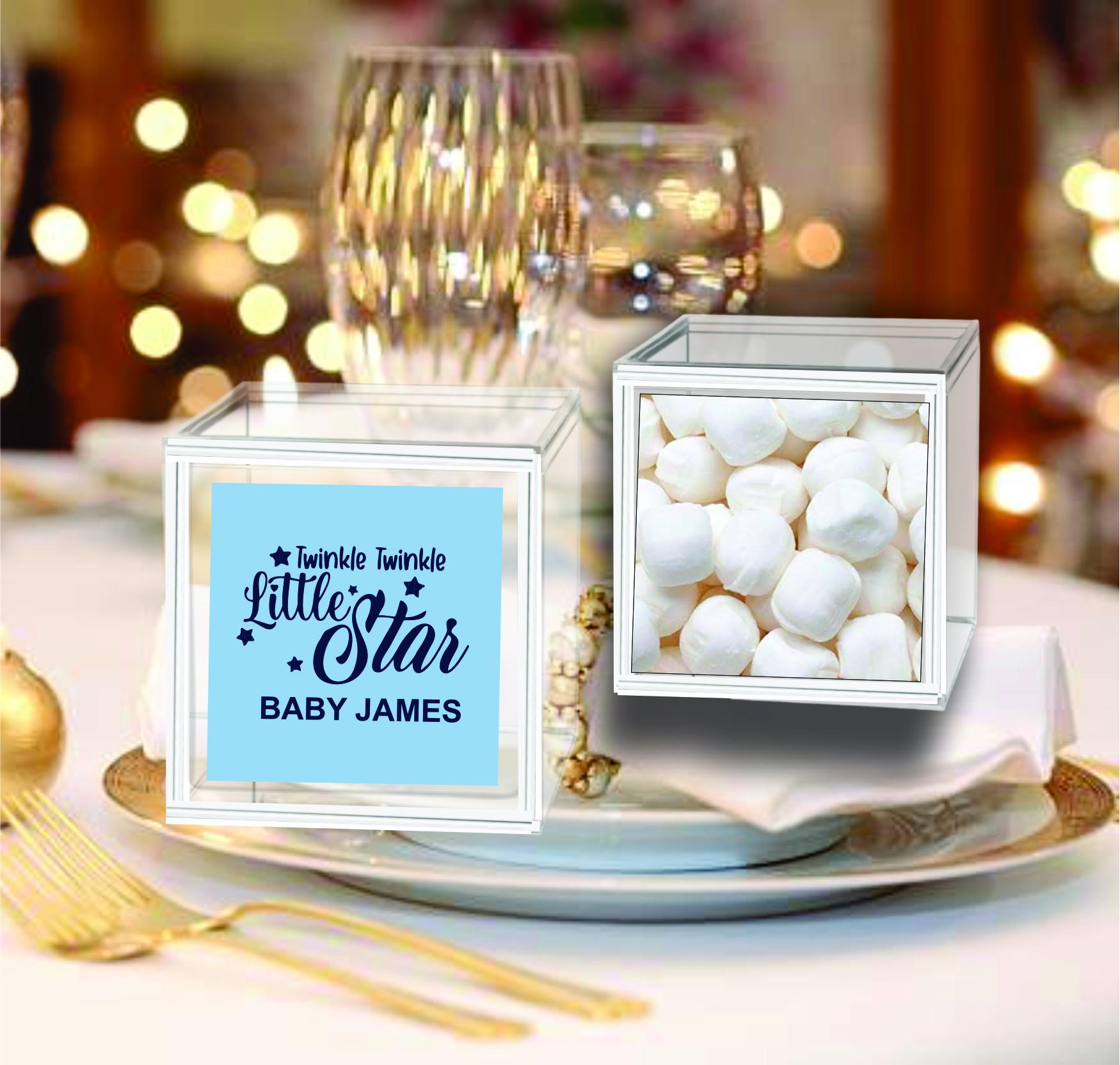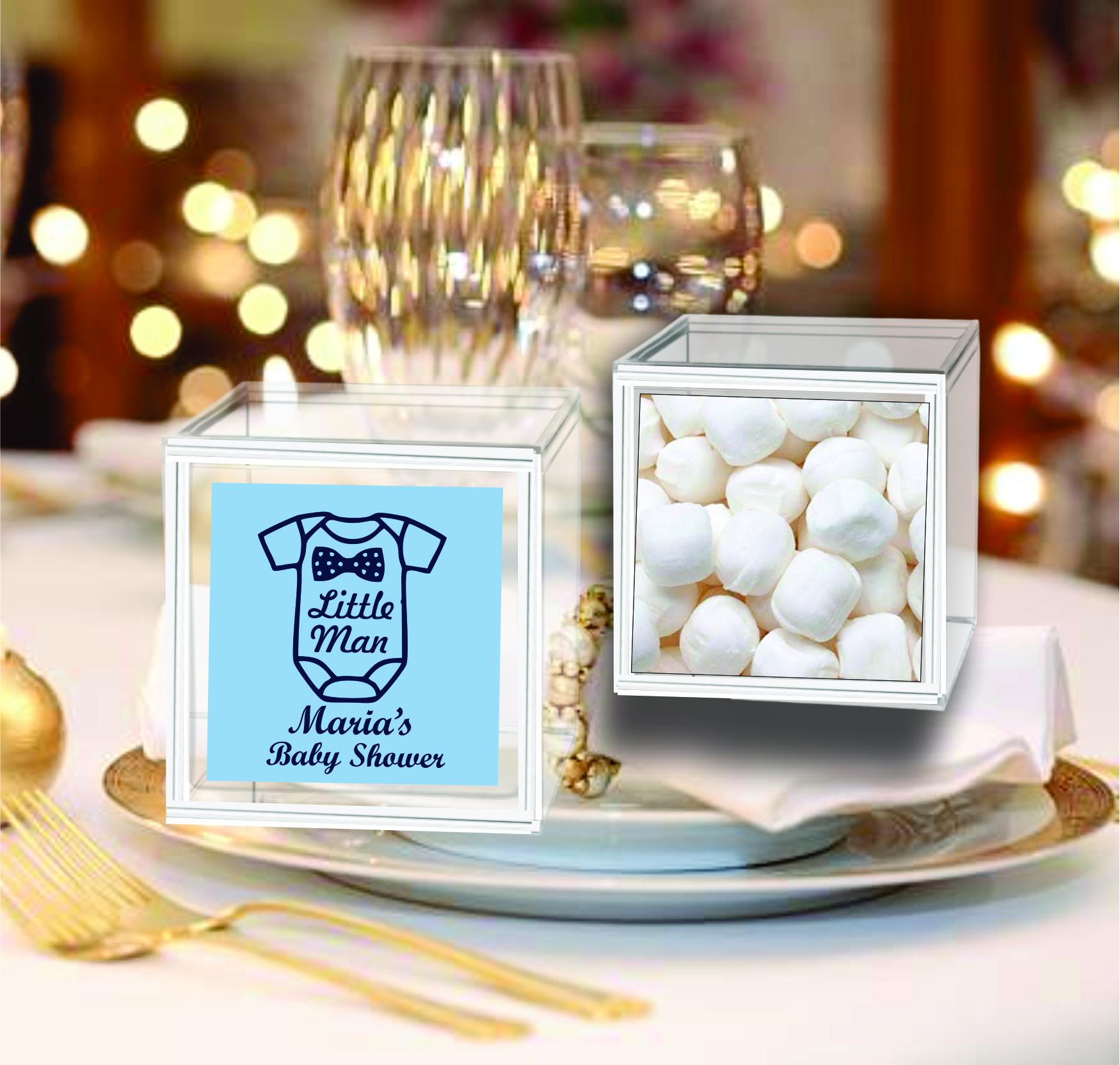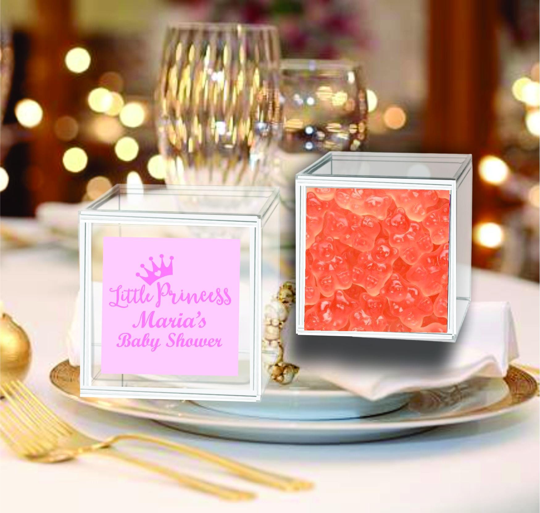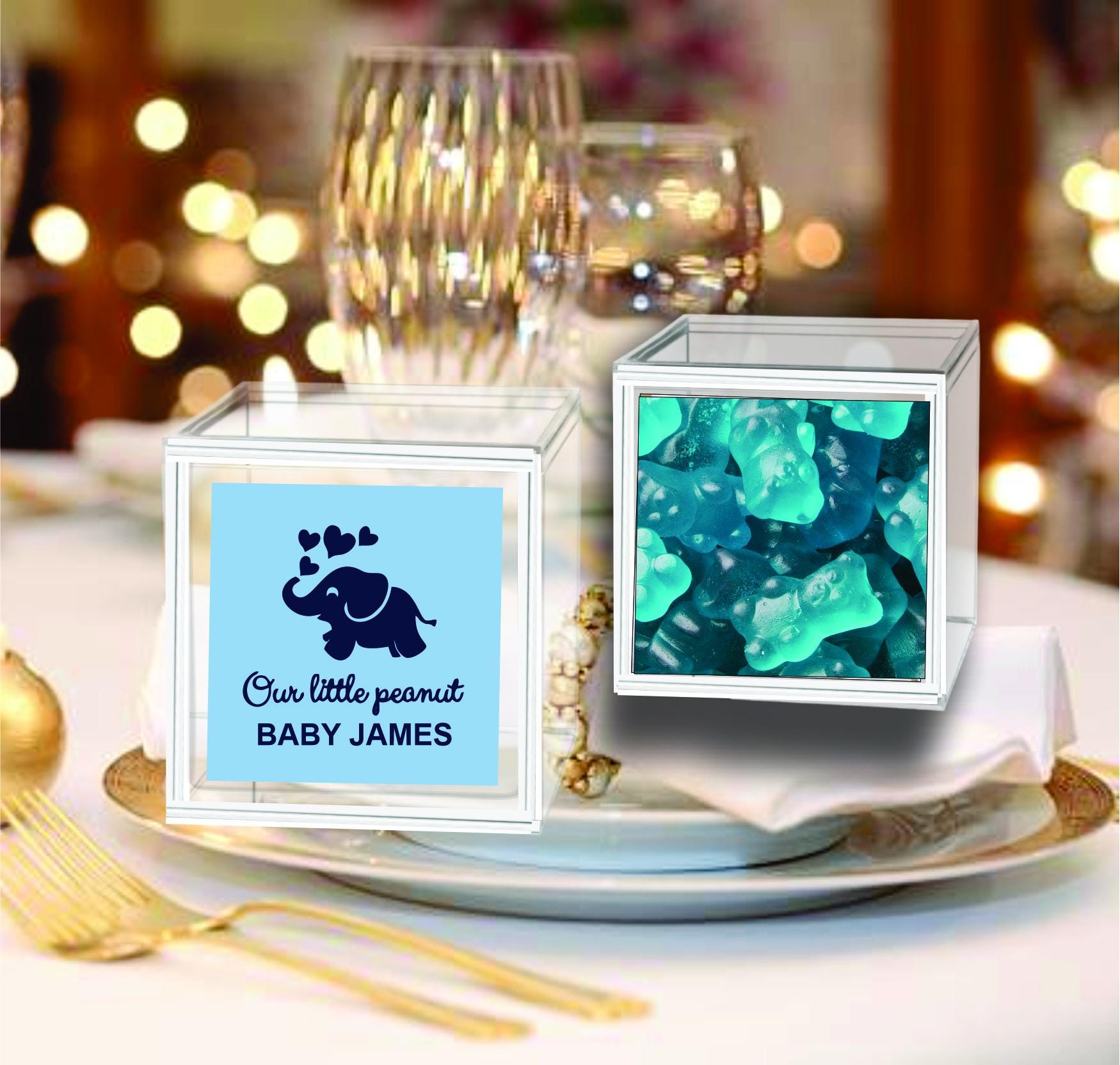 Whether you're planning a soft pastel shower or a bold gender reveal, these clear candy boxes make a charming, personalized addition to your party décor and favors. Fill them with love—and maybe a mint or two!
