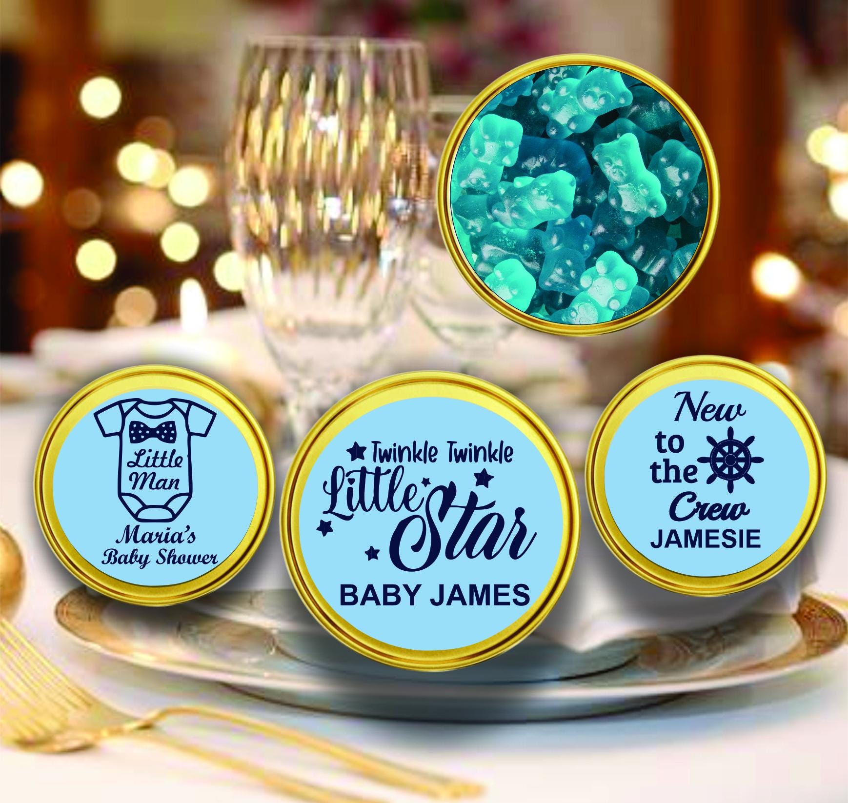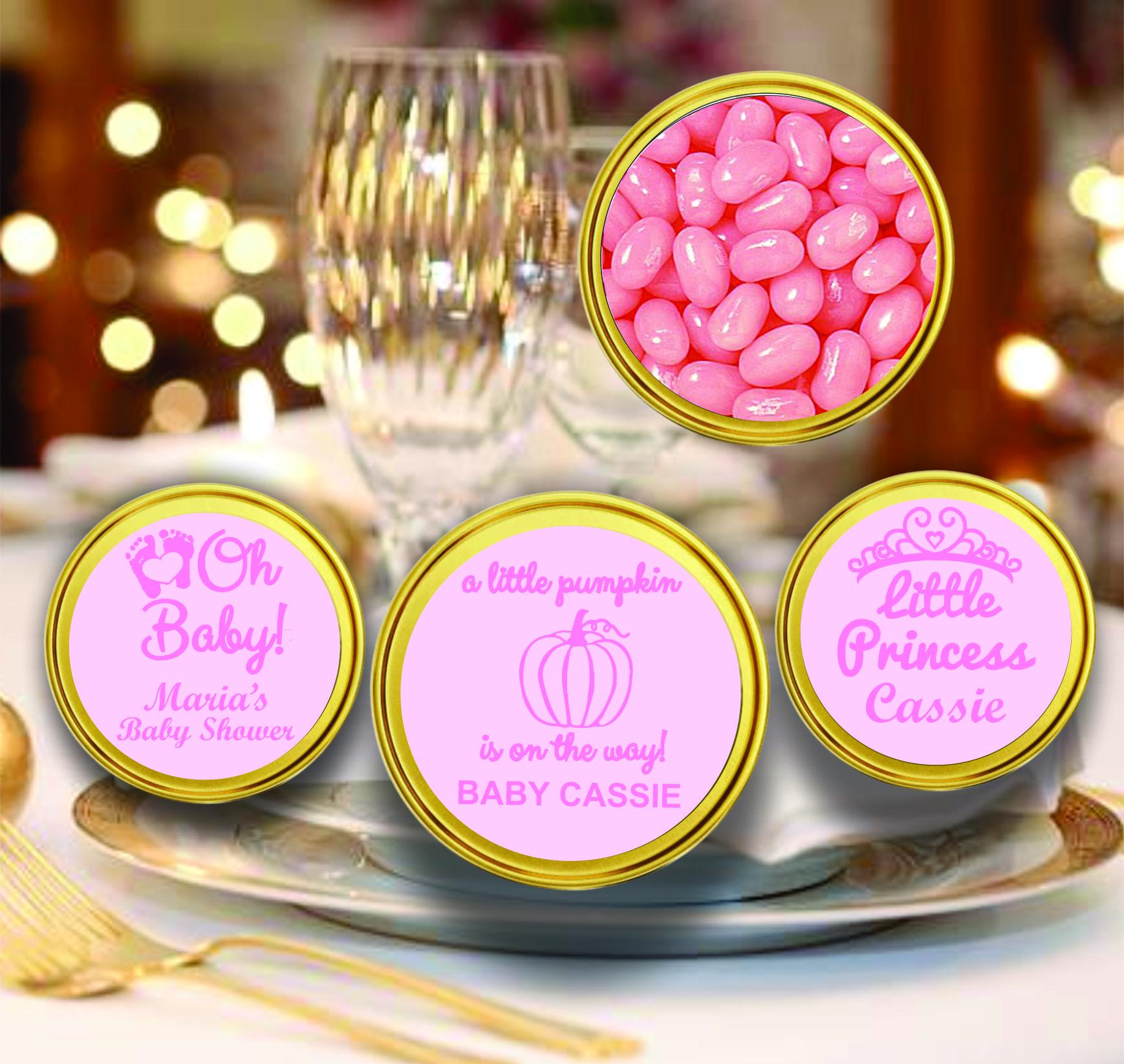Fill them with your choice of sweet treats—pillow mints, gummy bears, jelly beans, or your own favorite candy! These versatile mini favor tins are a perfect match for any baby celebration.