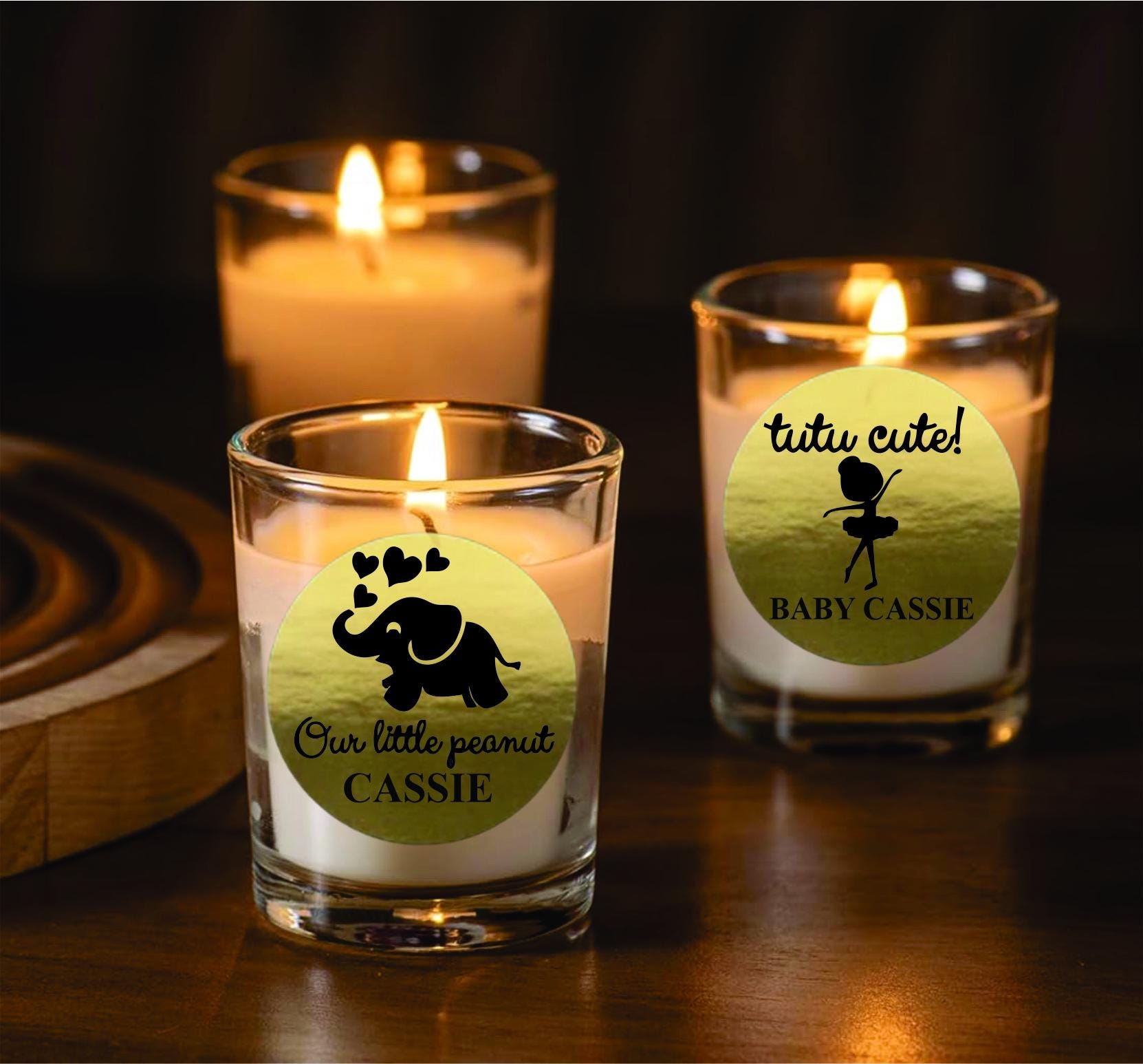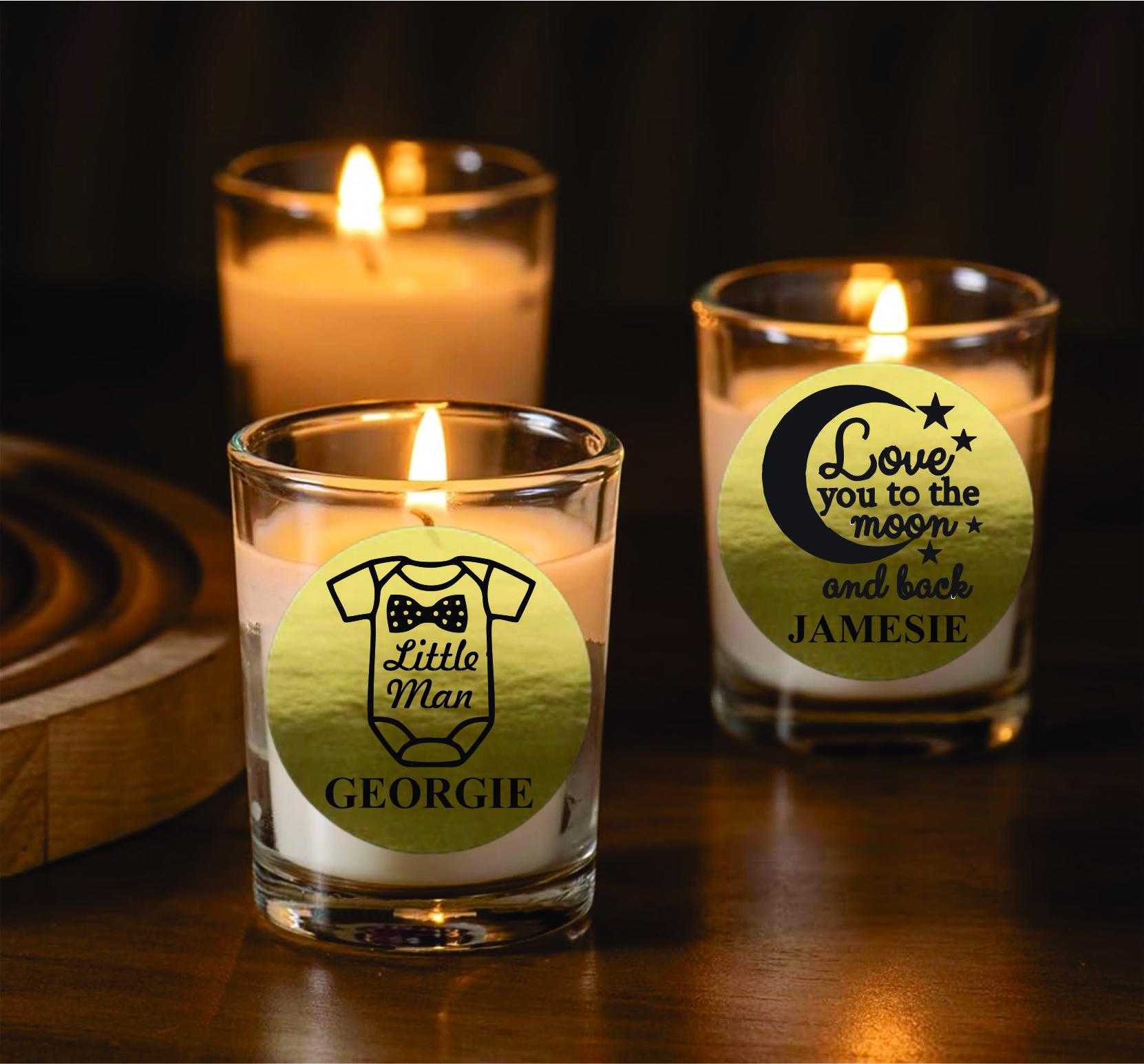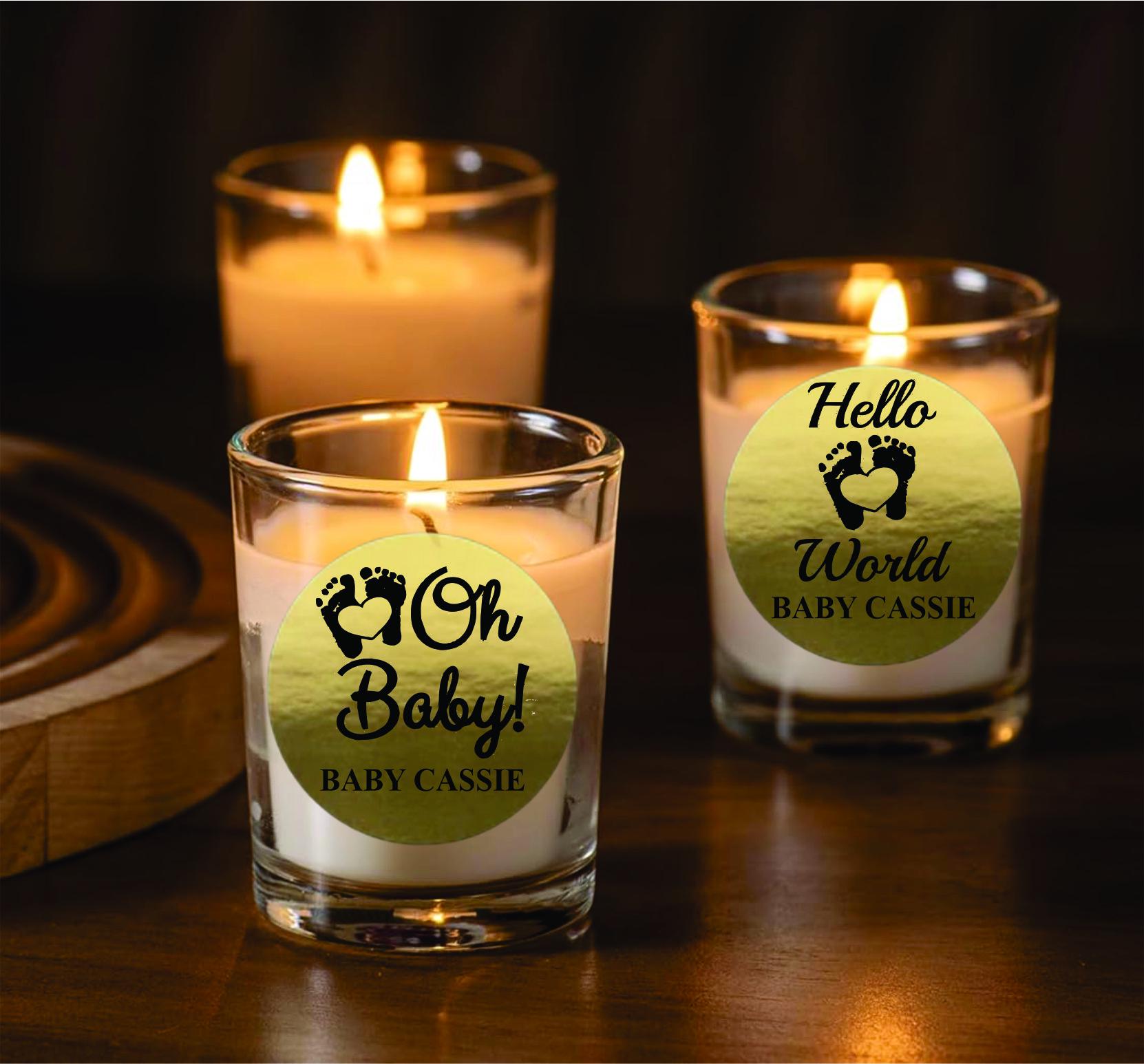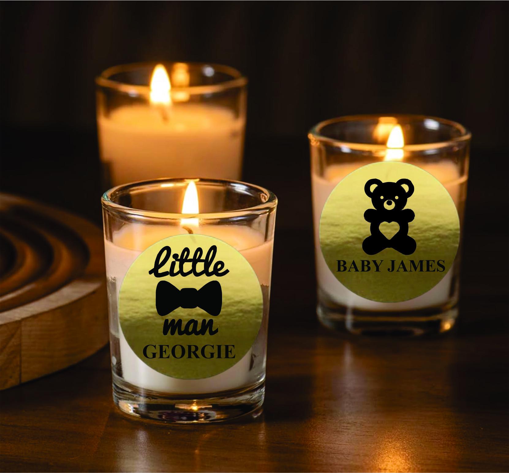 Make your baby shower or sprinkle even more memorable with Our Personalized Labels. Choose from a variety of adorable designs featuring baby-themed icons, names, or special messages. Personalize each candle with: