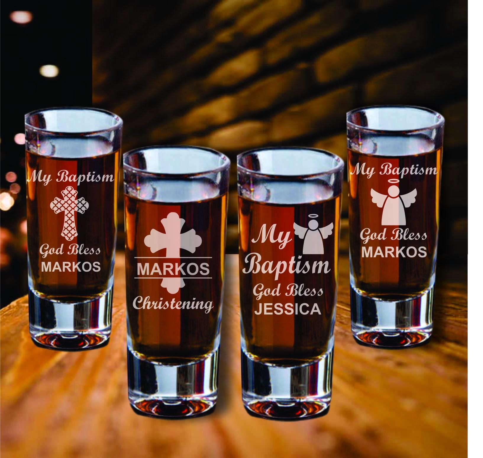 Celebrate your little one’s special day with our custom engraved Mi Bautizo Christening and Baptism party favors. This set of 12 Shot glasses is perfect for baptisms, Christening parties, or Spanish "Mi Bautizo" events. Each 2oz Shot glass is personalized with one of our many unique designs, laser-engraved with precision to ensure long-lasting quality that won’t fade. Made in the USA from food-grade, lead-free glass, these glasses are both dishwasher-safe and practical—making them a beautiful and functional keepsake. Perfect for guests to use and cherish for years, these custom party favors bring both elegance and a personal touch to any celebration.