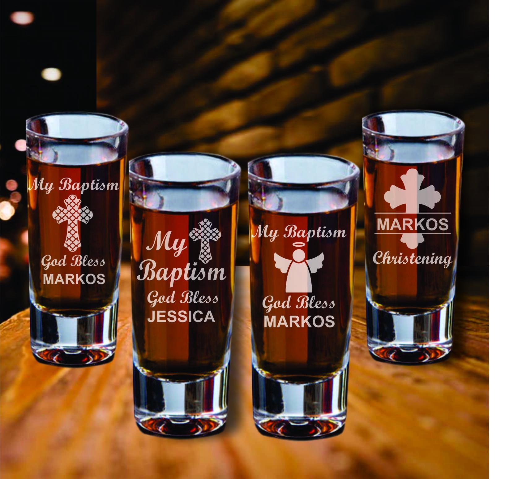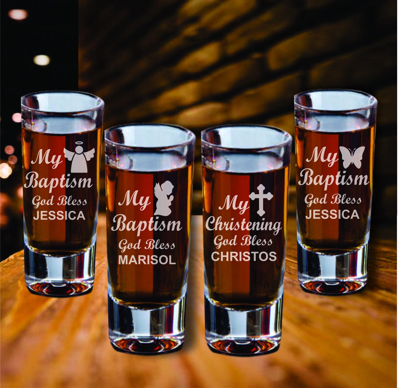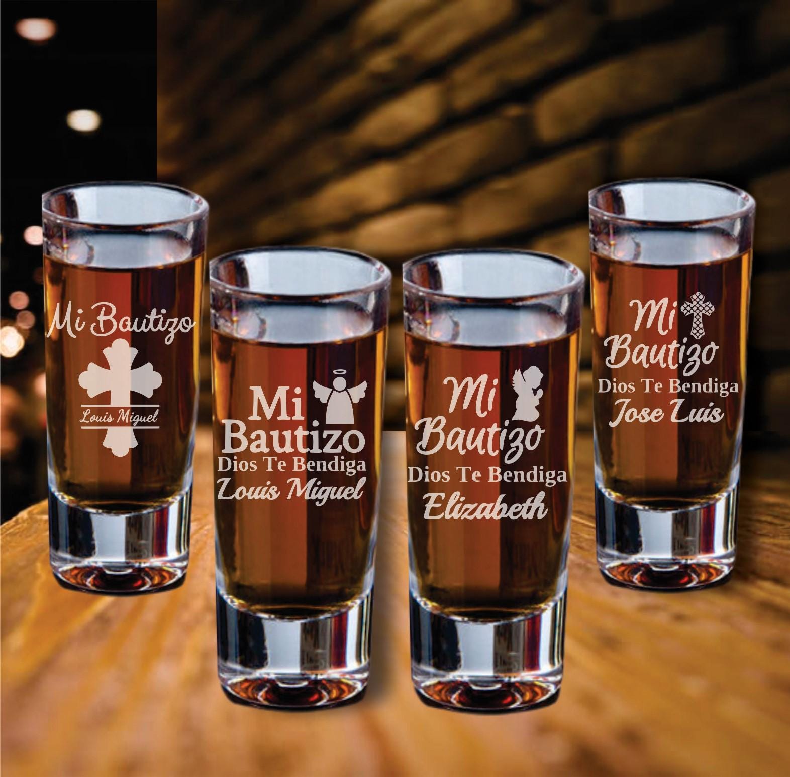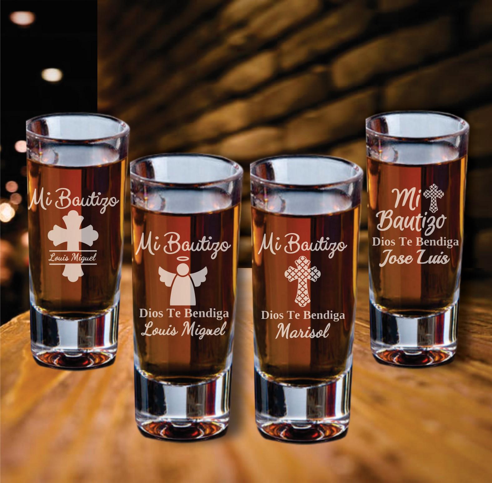 Our Personalized Shot Glass Christening and Baptism party favors will help Celebrate make your little one’s special day perfect. This set of 12 Shot glasses is perfect for baptisms, Christening parties, or Spanish "Mi Bautizo" events. Each 2oz Shot glass is personalized with one of our many unique designs, laser-engraved with precision to ensure long-lasting quality that won’t fade. Made in the USA from food-grade, lead-free glass, these glasses are both dishwasher-safe and practical—making them a beautiful and functional keepsake. Perfect for guests to use and cherish for years, these custom party favors bring both elegance and a personal touch to any celebration.