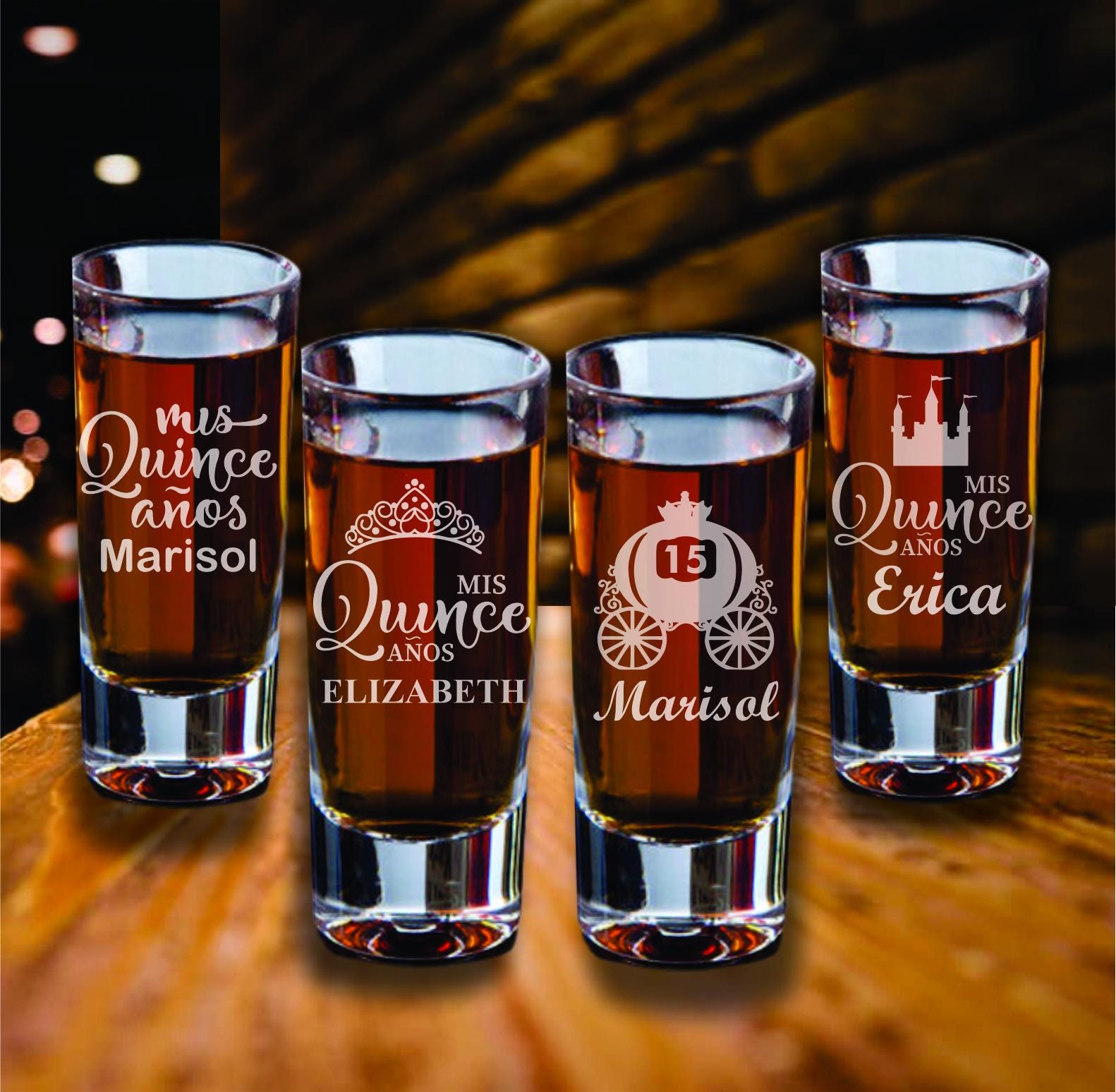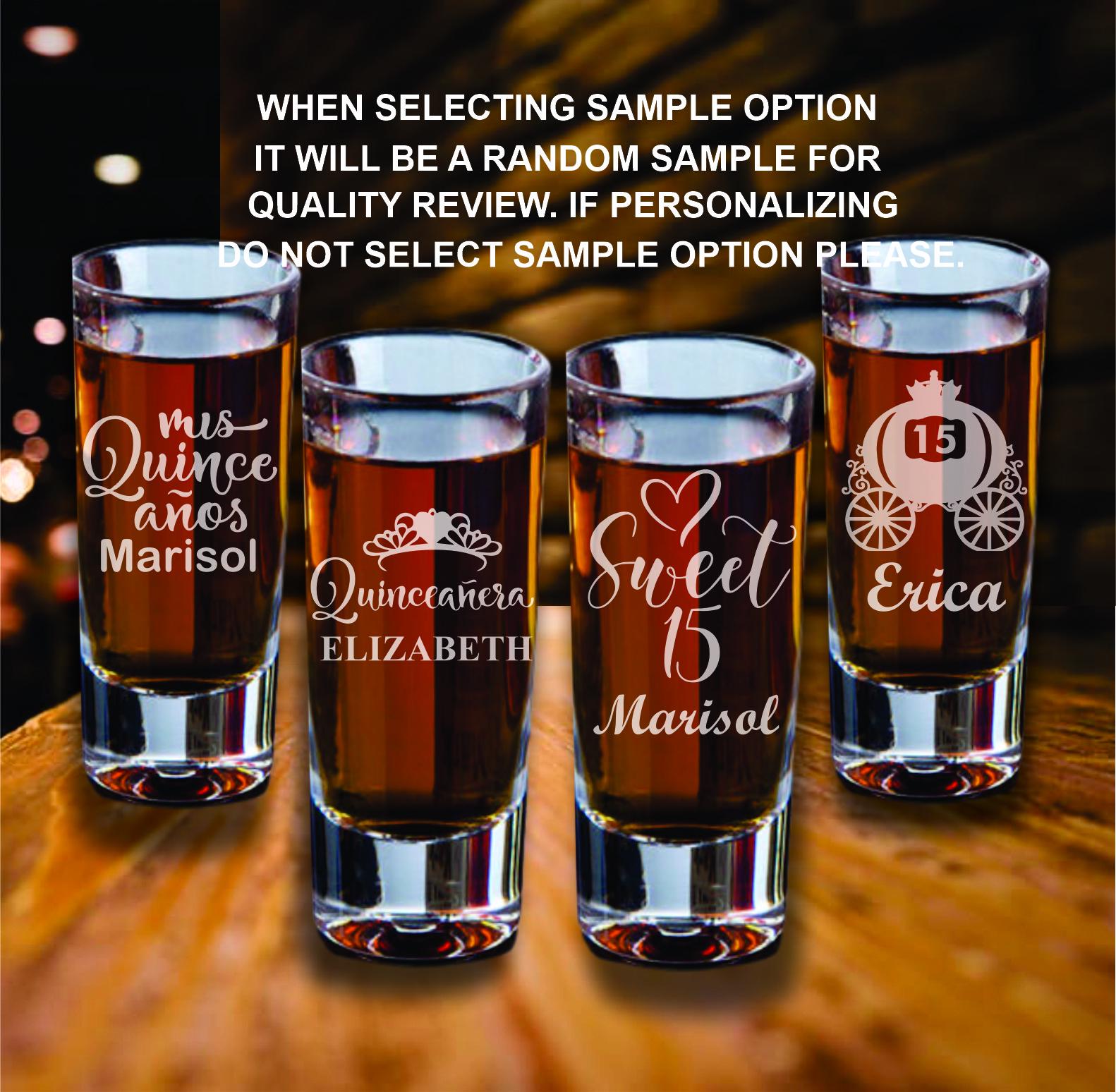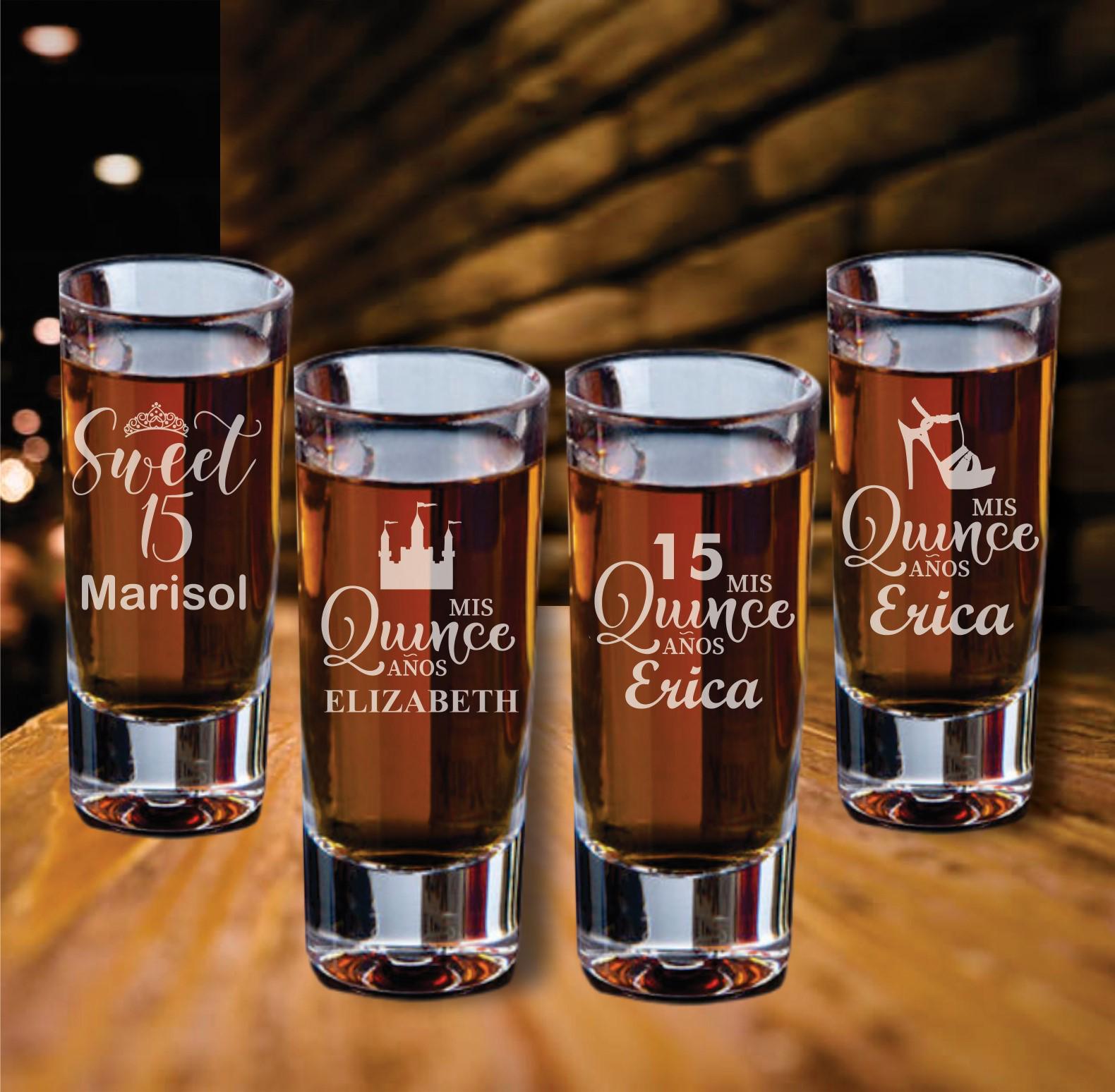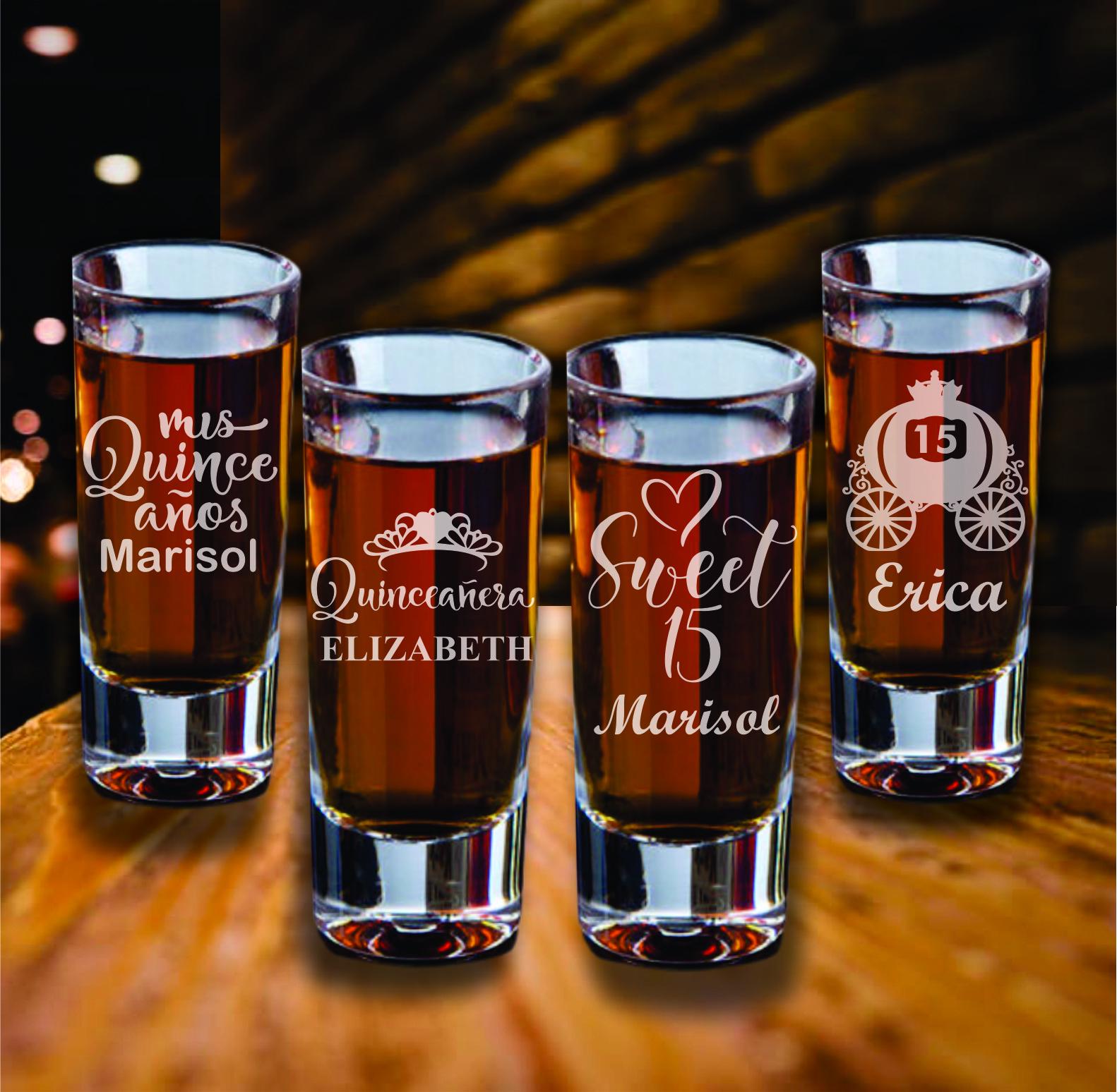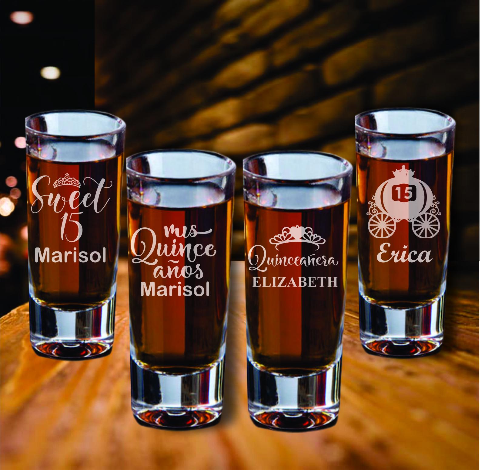 Make your Mis Quince Años celebration unforgettable with this set of 12 custom engraved shot glass favors! Perfect for Sweet 15 parties, these elegant and practical keepsakes will leave a lasting impression on your guests. Personalize each shot glass with the Quinceañera’s name, date, or a special message to create a unique and memorable party favor.