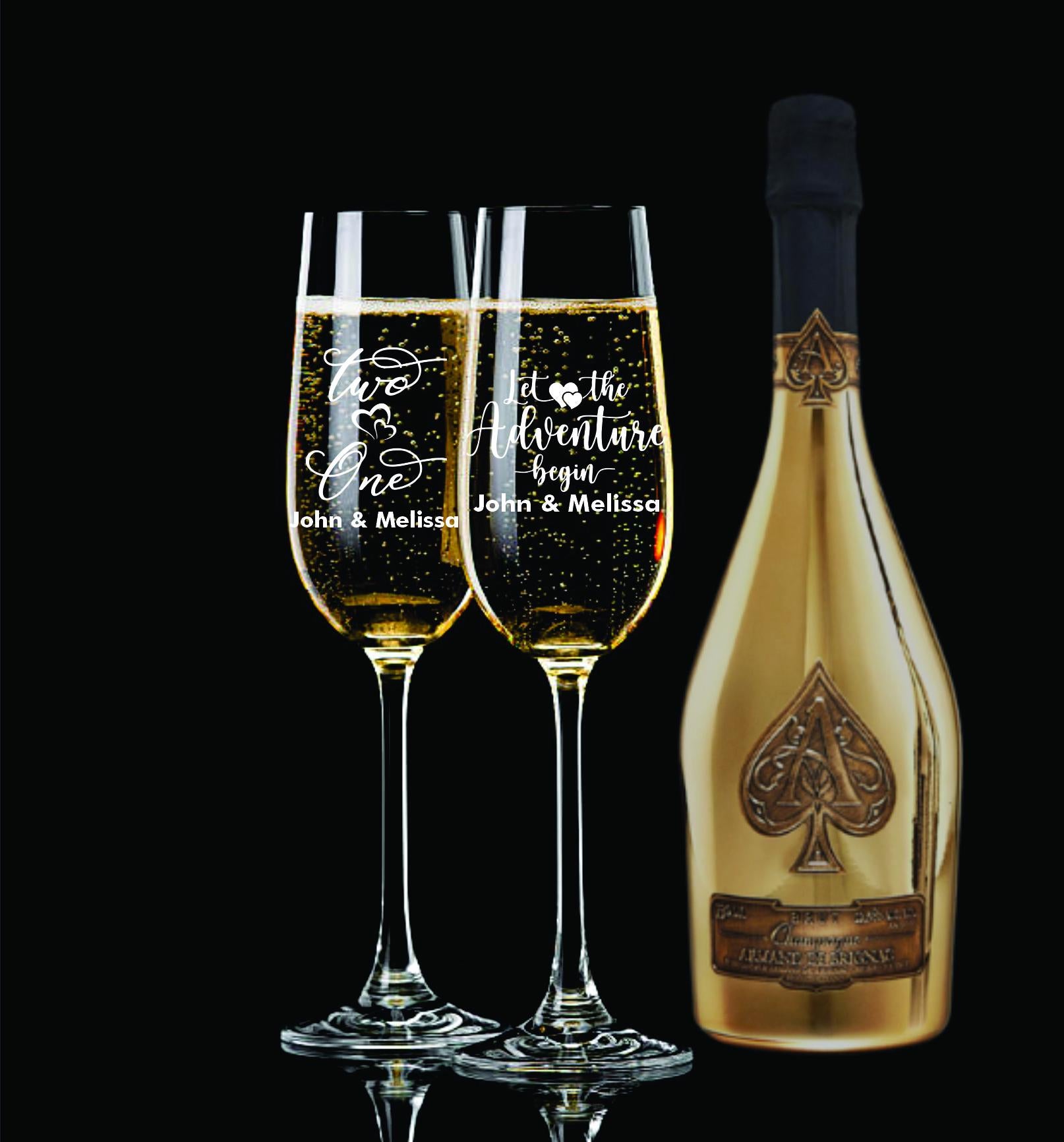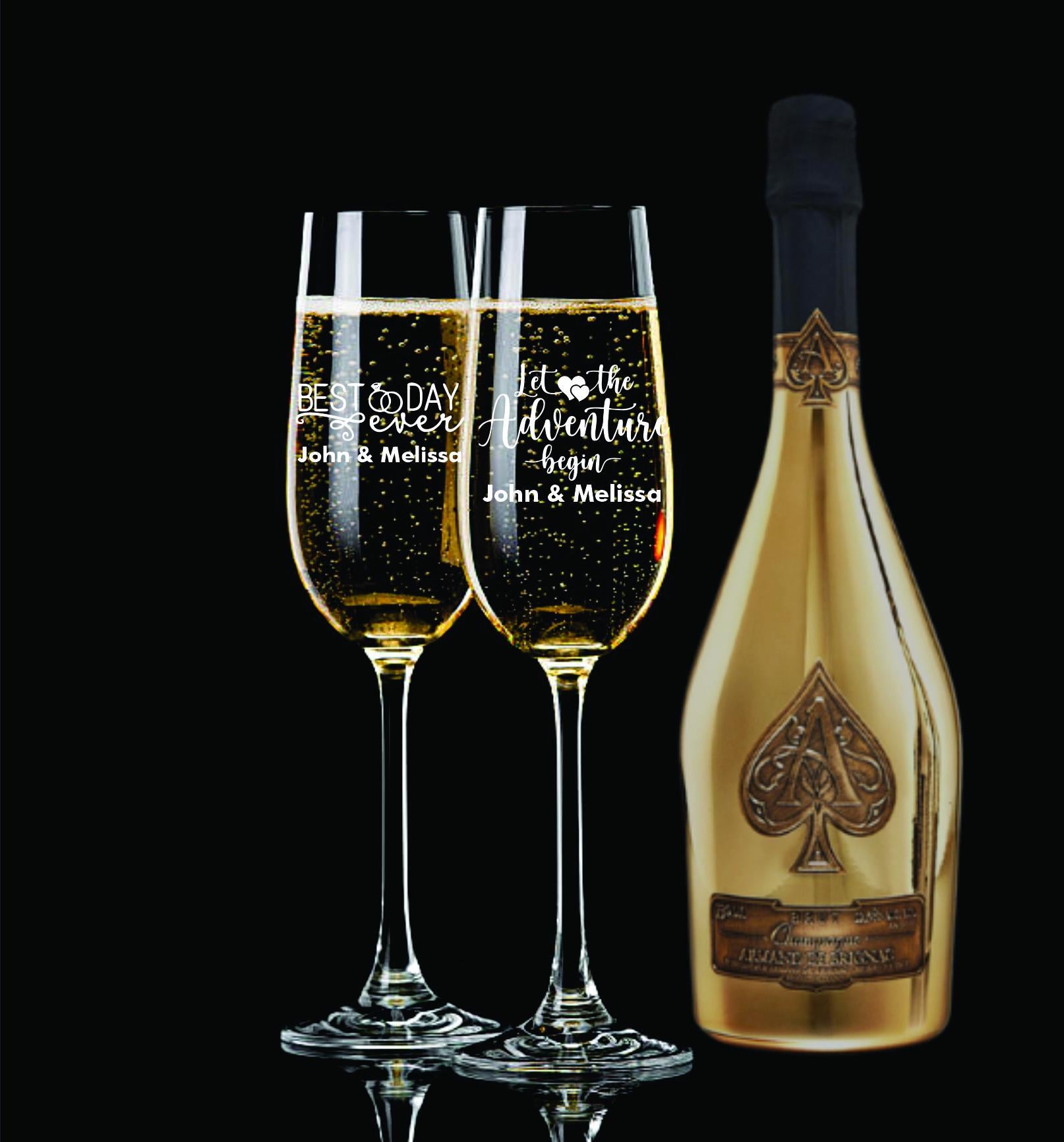 Toast to new beginnings and lifelong adventures with personalized champagne flutes your guests will treasure.