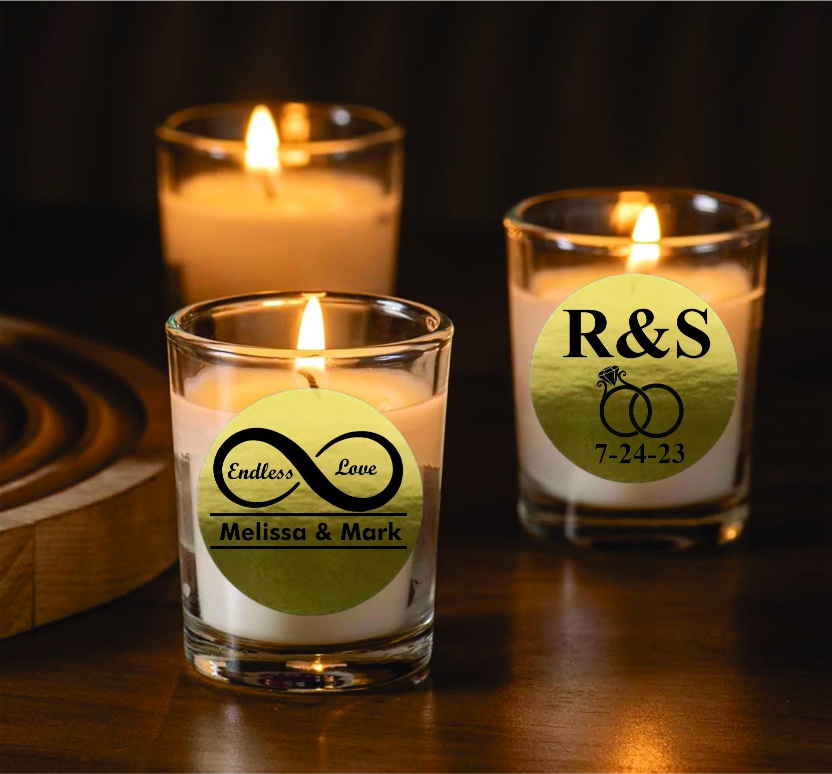No matter your wedding theme—rustic, vintage, modern, boho, or classic—these custom-engraved candle favors will beautifully complement your décor.